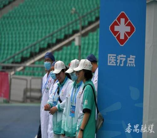 賽事期間,醫療保障團隊全程駐紮在賽場,隨時待命。他們開通了運動員院內就診綠色通道,確保運動員得到優先高效的醫療處置。