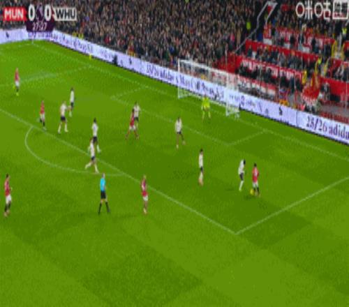 上半場曼聯創造了幾次好機會。首先是姆貝莫的吊射,他在右路出人意料地弧線球直接攻門,可惜西漢姆門將阿雷奧拉飛身救險。