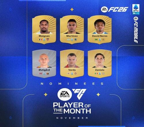 北京時間12月4日,意甲11月最佳球員候選名單公布,這6名球員為邁尼昂、勞塔羅、內雷斯、厄斯蒂高、瓦爾迪、紮尼奧洛。