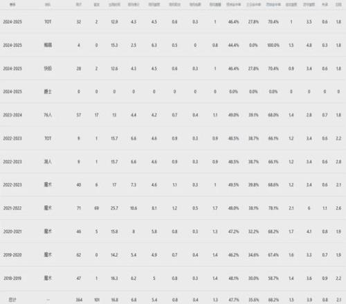 18年-25年,短短七年時間裏,班巴效力過的球隊有魔術、湖人、費城、快船、鵜鶘,以及現在的猛龍,迄今為止常規賽場均出戰16.8分鍾得到6.8分5.4板1.3帽,季後賽場均亮相3.3分鍾僅有0分1板0.3助0.3帽進賬。