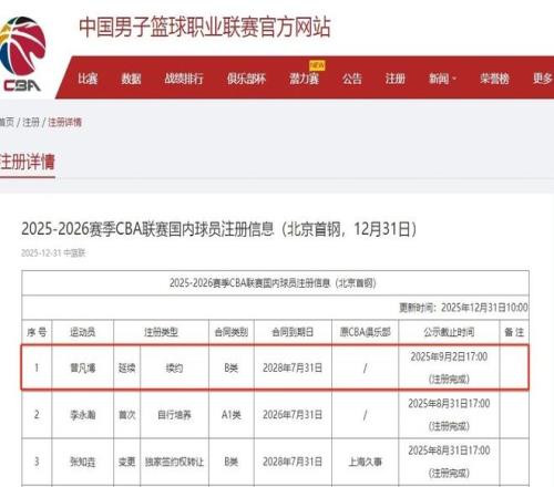 北京男籃在和廣廈男籃的比賽中敗北,遭遇了新賽季的第一場失利。不過需要注意的是,目前的北京男籃還不是完整體,缺少了曾凡博和陳盈駿,以及還有奧莫特離隊的外援空缺。就在剛剛,CBA官方更新了球員注冊名單,顯示曾凡博已經完成了注冊,他和北京男籃簽署了三年B類合同。接下來1月1日和廣東男籃的元旦大戰,將會是曾凡博新賽季的首秀。曾凡博的能力就不用多說了,絕對是國內最好的鋒線球員之一,上個賽季場均能夠得到14.7分4.7個籃板1.9次助攻的數據。曾凡博的複出,肯定能夠在攻防兩端以及護框方麵給北京男籃帶來不小幫助。