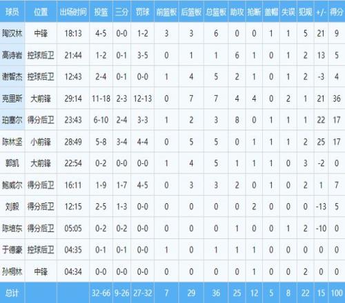 數據方麵,克裏斯36分7籃板4助攻4搶斷,填滿數據欄,其中得分創賽季新高。珀塞爾高效砍下17分3籃板8助攻。陳林堅三分球4投3中,得到17分,展示了冷麵射手的本色,另外,他的正負值高達正25,為全場之最。其他球員,陶漢林9分6籃板,鮑威爾7分,高詩岩5分6助攻,劉毅5分,謝智傑4分。