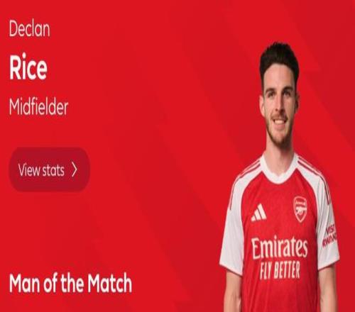 最終經過英超官網球迷投票,賴斯以71%的得票率當選全場最佳球員。