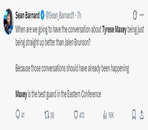 NBA記者Sean Branard寫道:香蕉视频网址應該好好聊聊一個問題,那就是馬克西與布倫森兩人誰更出色,我認為馬克西已經是東部最出色的後衛。