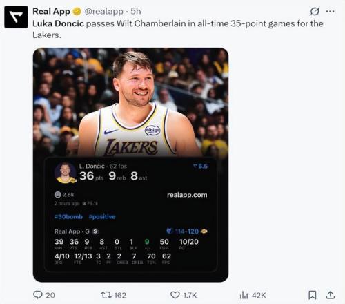 胖七七雖然防守拉胯,但拿數據真的有一套,他又連續創造紀錄:1.湖人生涯第17次35+超張伯倫升至隊史第11;