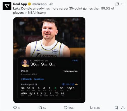 4.東契奇拿到的35+場次已經比NBA曆史99.6%的球員還多;