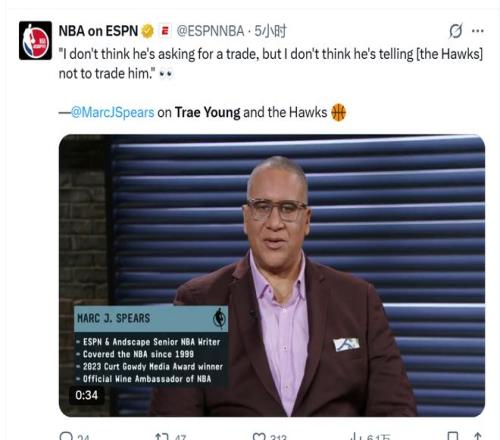 之後另外一位大記者Marc Stein跟進報道,過去一周老鷹已經和多支球隊談判一直在主動推進特雷-楊的交易,他們想爭取在交易截止日高峰期前將楊送走。
