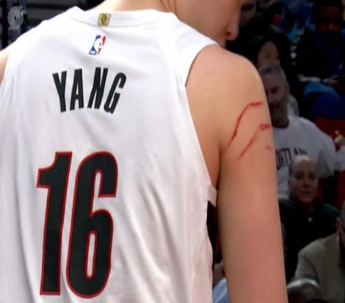 楊瀚森在場上的主要任務就是扛亞當斯,最大程度發揮自己的體型優勢,雖然在對抗中被亞當斯上了一課,但楊瀚森也有不落下風的回合。最後楊瀚森胳膊上被抓出兩道血痕,算是完成了斯普利特交代的任務。