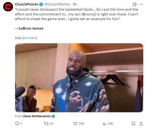 在這場比賽後,詹姆斯接受ESPN記者戴夫-麥克梅納明采訪,他說道:我絕對不會褻瀆籃球之神,我為了這項我熱愛的運動投入了時間、精力、努力。我的兒子就在場邊看著,我是絕對不會辜負這項運動的,我必須為他樹立榜樣。