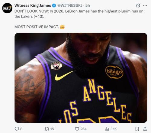 進入2026年後,41歲的詹姆斯正負值+43是湖人第一,此前不是很多人說勒布朗正負值差嗎?如今正負值都是最高的,這怎麽說?