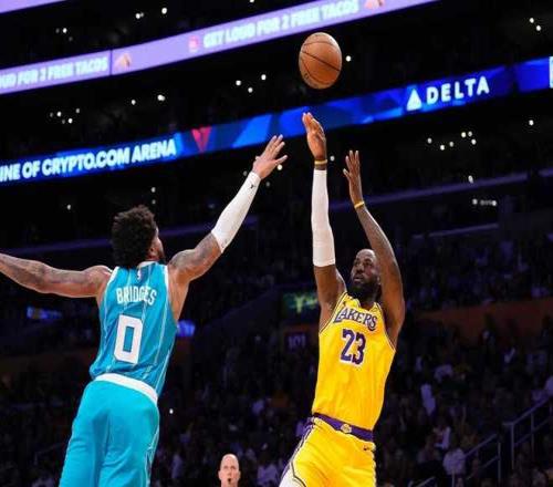 中場休息回來,雙方進攻火力進一步提升,湖人本場第二次單節得分35+,且比第二節多得到22分,但黃蜂首次單節狂轟40分。湖人被拉開60-74落後,東契奇第三節回暖單節得分15分,引領湖人持續反撲追到89-93僅差4分。黃蜂隨後內外開花重新擴大兩位數領先優勢,湖人單節38-40再輸2分,三節結束湖人93-104落後黃蜂。前三節比賽,湖人三分28中12,東契奇5記三分34+3+4與詹姆斯20+8+6,引領4人得分上雙;黃蜂三分36中16,布裏奇斯23+8與三球18+5+9,引領4人得分15+。