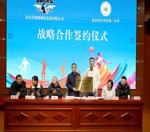 1月14日,北京首鋼籃球俱樂部與昌平二中教育集團正式簽署共建合作協議,以體教融合為紐帶,攜手為青少年籃球發展注入新動能,共同推動校園籃球事業升級提質。北京首鋼籃球俱樂部總經理張雲鬆、訓練營負責人周宏華、青年隊主教練王驍輝,昌平二中教育集團黨委書記李繼陽、總校長王誌強、回龍觀校區執行校長金秀榮及回龍觀校區學生處主任趙文進等領導嘉賓出席簽約儀式,共同見證這一重要時刻。