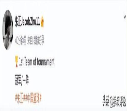 國青混血小將朱正表現出色,拿下18分6板2助攻率隊完成奪冠,入選最佳陣容一陣。