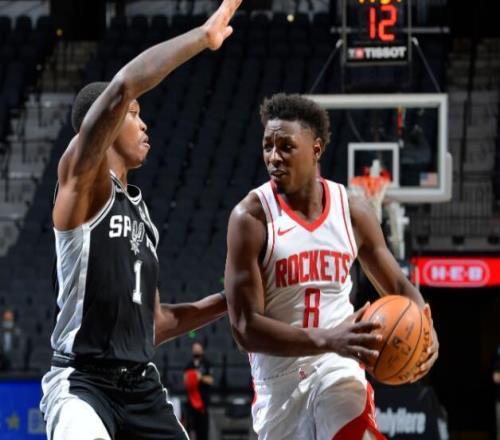 舉個例子,當年火箭隊還在瘋狂擺爛的時候,也就是在2021年1月15號,火箭隊那天以109:105戰勝了聖安東尼奧馬刺隊。那場比賽,泰特首發出戰,他在33分鍾裏12投6中,全場砍下了13分、5籃板,並且送出了全隊最高的10次助攻,還有2個蓋帽。而那場比賽,泰特也成為了火箭隊自弗朗西斯之後,第一位在單場比賽裏砍下至少10分、10助攻的新秀球員。