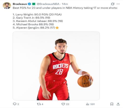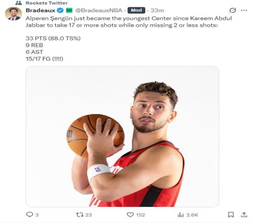 這場比賽申京17中15的表現也引發了休斯頓媒體的熱議,他也一戰創造多項紀錄: