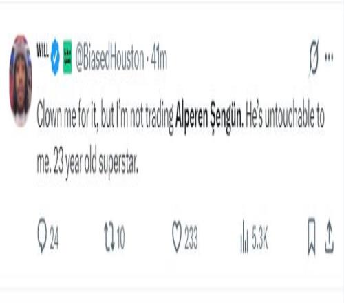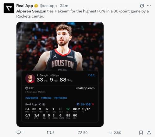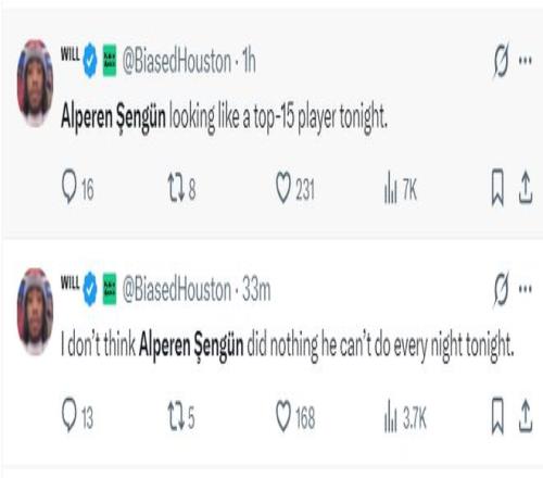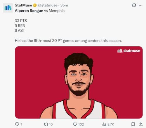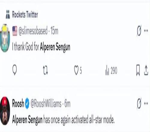 火箭隊記蘭德裏-賓克利賽後寫道:申京完成了所有任務,這也是火箭隊在進攻陷入困境的情況下仍能拿下比賽的原因。