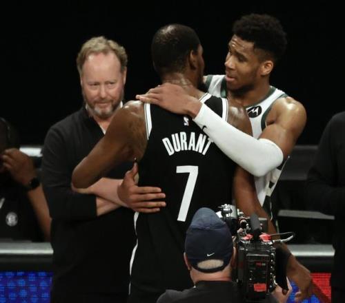 7、2020-21賽季,雄鹿次輪與坐擁三巨頭的籃網大戰7場。首戰,哈登傷退;G4,字母哥踮腳歐文,導致歐文傷退;G5,哈登複出,但狀態大不如前;G7,戰至最後時刻,杜蘭特的三分絕殺,因腳太大而踩線,隻算做2分,雄鹿冒險過關;