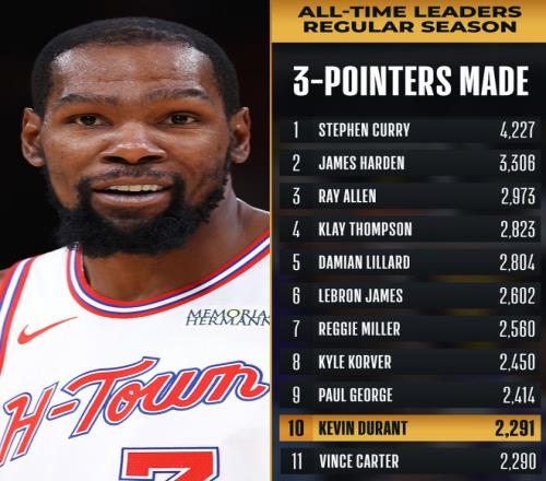 北京時間1月29日,火箭被馬刺逆轉結束二連勝。這場比賽是凱文-杜蘭特的生涯之夜,他的三分球命中數來到2291+升至曆史第十位。此役火箭一度領先馬刺16分之多,在末節馬刺已經完成反超,馬刺拉開到10分以上直接打崩了火箭。