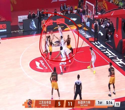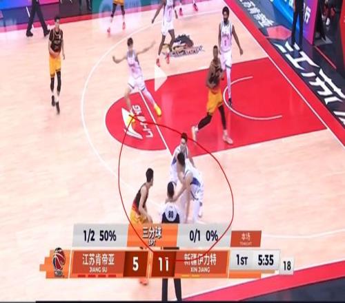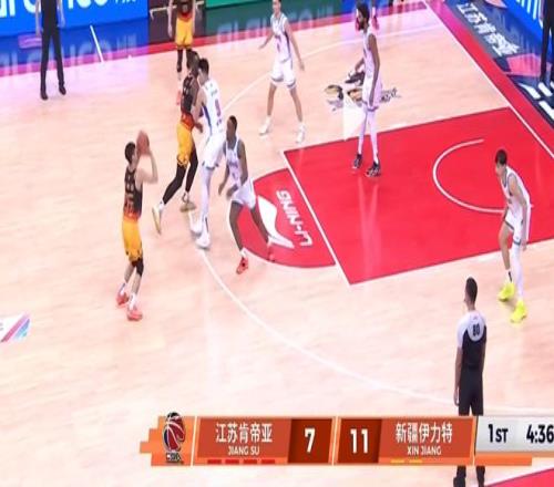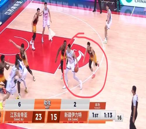 陣地戰防守,龐崢麟也有出色表現。這一球龐崢麟發現隊友補防後漏人,自己又去幫隊友協防卡位,並且協防成功,讓新疆球員吳冠希接球失誤,說明他擁有不錯的團隊防守意識