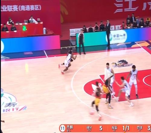 除依靠速度外,龐崢麟也能利用技術和節奏攻擊籃筐,比如這一球他是在突破過程中使用了頓拜技術,晃到了外援,成功上籃打進。