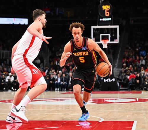 本場比賽中,老鷹的先發得分後衛戴森-丹尼爾斯(Dyson Daniels)的表現令人大跌眼鏡。丹尼爾斯全場出場31分29秒,投籃12中2,三分線外3中0,得到了4分6籃板7助攻3搶斷的數據,其中還包括了4個前場籃板,還有1次失誤和2次犯規,正負值為+2。一方麵,丹尼爾斯在防守端的表現絕對是值得肯定的,他也展現出了自己應有的個人防守能力並且起到了相當不錯的效果。不僅如此,丹尼爾斯在籃板爭搶方麵的表現也是值得肯定的,而且他在傳球和組織方麵也是起到了一定的作用的。然而另一方麵,丹尼爾斯的進攻效率實在是太糟糕了,他的突破能力完全沒有發揮出來,他在外線投籃方麵的穩定性更是慘不忍睹。