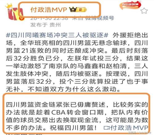 “把隊內有價值的球員交易出去,換取現金流”,可問題是這樣一來,四川隊還有必要在CBA繼續“混”下去嗎?不知道各位網友大神,覺得四川隊目前該怎麽辦?