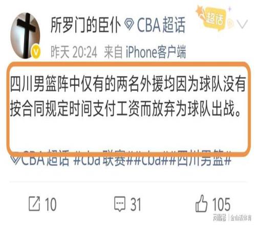 值得一提的是,本場比賽前,據媒體人“所羅門的臣仆”社媒發文爆料:四川男籃陣中僅有的兩名外援均因為球隊沒有按合同規定時間支付工資而放棄為球隊出戰。”,隨後,“所羅門的臣仆”又補充表示“兩個外援目前還沒見過工資。”。由於兩名外援罷賽,四川隊隻能全華班出戰,結果又是一場慘敗。