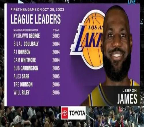 據數據顯示,凱肖恩-喬治、庫利巴利、AJ-約翰遜、惠特莫爾、卡林頓、薩爾、特雷-約翰遜、威爾-萊利均在詹姆斯NBA首秀後出生。