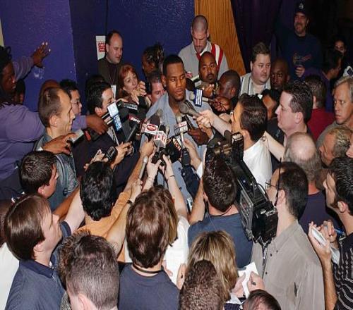 2003年7月8日,NBA夏季聯賽,騎士107-80戰勝魔術,詹姆斯首次出現在職業比賽,得到14分7籃板6助攻;2003年10月29日,騎士客場挑戰國王,詹姆斯迎來NBA生涯的第一場正式比賽,最終他得到25分6籃板9助攻。