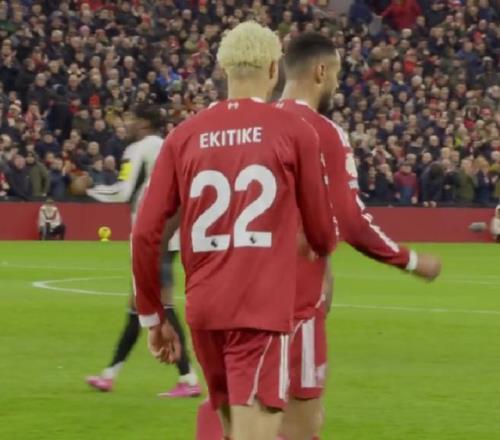 上半場,在被戈登率先進球之後,維爾茨站了出來,他在禁區內漂亮過人後橫敲,埃基蒂克跟進一腳近距離推射,穩穩把球打進,為利物浦扳平比分。之後不久,埃基蒂克再進1球,半場結束,利物浦2-1反超比分。