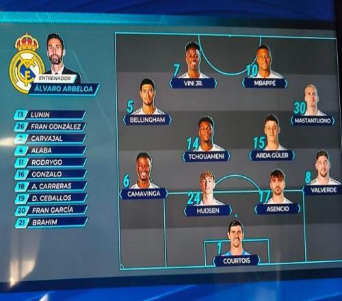 皇馬首發:庫爾圖瓦/巴爾韋德、勞爾·阿森西奧、懷森、卡馬溫加/居萊爾、楚阿梅尼、貝林厄姆/馬斯坦托諾、姆巴佩、維尼修斯