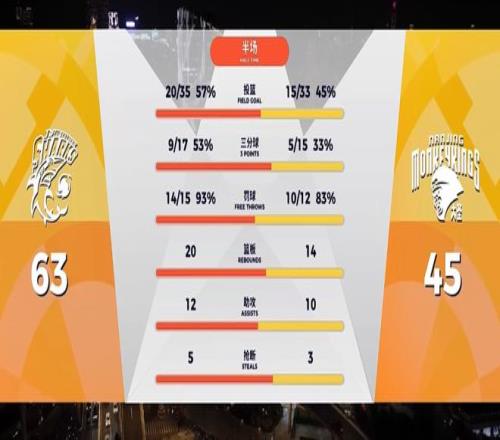 此後的比賽,南京隊的進攻失誤連連,大鯊魚則穩紮穩打,劉禮嘉內線得手,張鎮麟弧頂三分命中!半場比賽結束,上海久事男籃在主場63-45領先對手18分進入更衣室。