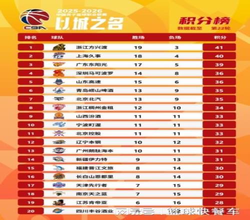 附:CBA積分榜最新排名
