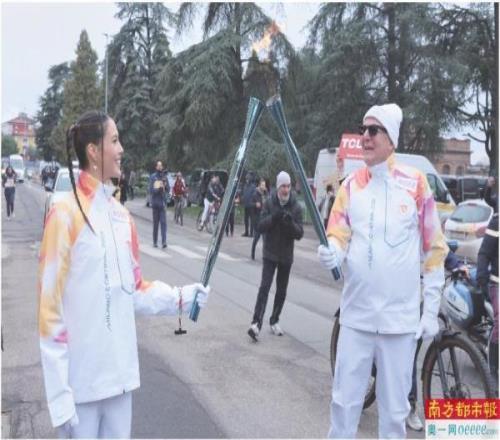 1月19日,穀愛淩(左)參與米蘭冬奧會火炬傳遞。