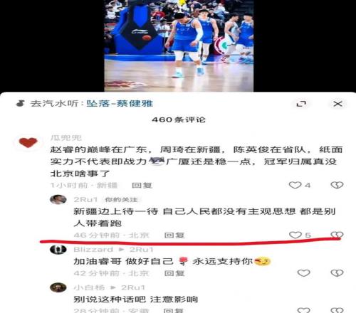 另一新疆球迷分析球隊實力稱,“趙睿的巔峰在廣東,周琦在新疆,陳盈駿在省隊,紙麵實力不代表即戰力,廣廈還是穩一點,冠軍歸屬真沒北京啥事了。”