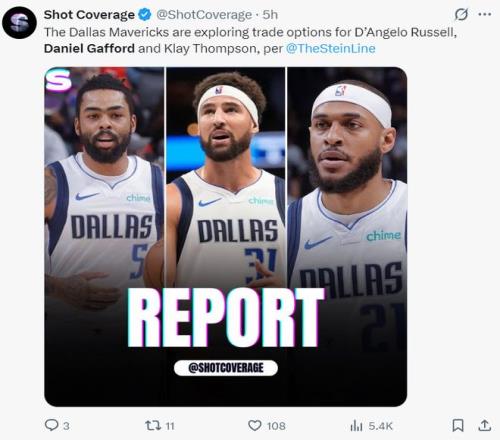 北京時間2月3日,根據《紐約郵報》記者馬克-斯坦恩的報道,達拉斯獨行俠正在積極的兜售丹吉洛-拉塞爾、克萊-湯普森、丹尼爾-加福德三位角色球員,他們不想送走馬紹爾。