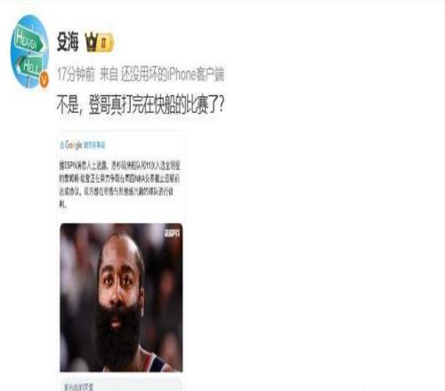 "那麽對於哈登這波操作你覺得值不值?如果火箭交易得到他,你覺得能衝出西部嗎?評論區說出你的腦洞!"
