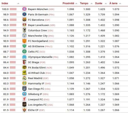 據悉,該排名基於四個指標:傳球的距離(越短越好)、控球階段的傳球節奏、控球的持續時間以及在對方進攻三區內接在膝蓋以下(地麵)傳球的百分比。