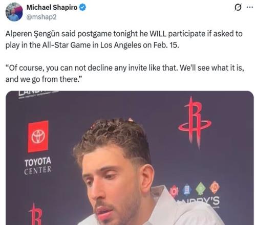 結果在表現如此糟糕的情況下,賽後談及全明星話題,申京仍表示如果全明星賽邀請他參賽,他一定會出戰。