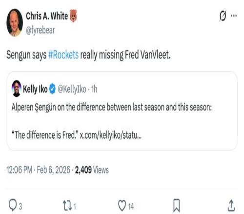 火箭隊苦吞2連敗,申京僅7分仍不忘全明星!遭KD烏度卡場上場下連續批評後,賽後公開表示想念範喬丹。