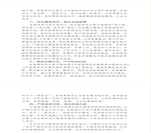 中國籃球協會2月7日發布關於進一步加強群眾性賽事安全監管工作的通知。