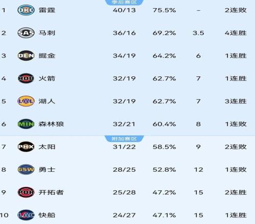 火箭當前以32勝19負位列西部第四,戰績與第五的湖人打平,僅領先第七的太陽2個勝場,落後第三的掘金1個勝場,既有希望衝擊前三甲又麵臨著掉出季後賽區域的危險。