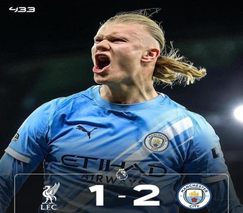 下半場補時第3分鍾,努內斯在禁區內阿利鬆出擊放倒,主裁判果斷判罰點球並出示黃牌,哈蘭德主罰點球命中逆轉絕殺,脫衣慶祝領到黃牌,比分1-2!