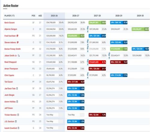 火箭隊目前大名單上是14+3,火箭隊距離第一硬帽隻差125萬,這也是火箭競爭托馬斯失敗的一個要因,可拉塞爾的負麵消息太多,除了火箭這種特別欠缺控球後衛的球隊才會追求,火箭隊最多也隻能給125萬的底薪。