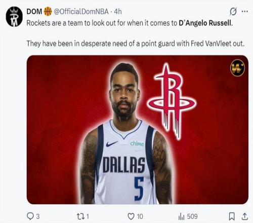 根據美媒Dom的報道,當談到丹吉洛-拉塞爾這位球員時,火箭隊是他值得關注的下家,由於範弗利特的傷病(大概率賽季報銷),火箭迫切需要一位控球後衛。