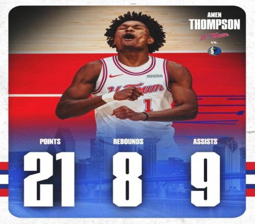 史密斯的狀態更是起伏劇烈:手感火熱時,他像極了縮小版的杜蘭特,內外開花、無解單打;可一旦投籃手冷,整個人就變得迷失,攻防兩端都找不到節奏。伊森的健康問題依舊是老大難,反複的傷病讓他很難保持連續性,場上存在感時有時無。在這群年輕人中,唯有阿門湯普森穩定向上,成為火箭當下最可靠的潛力星。賽季初範弗利特報銷,球隊被迫讓阿門頂上控衛位置。起初的適應期相當痛苦,前20場比賽阿門的表現可以用“掙紮”來形容:防守強度明顯不如上賽季那麽凶悍,進攻端更是猶豫不決,持球推進時經常出現停頓,傳球時機也把握不準。那段時間,他的場均數據和正負值都處於低穀,許多人開始質疑他是否真的適合組織後衛角色。