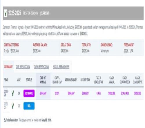 籃網隊裁掉了托馬斯599萬的資質報價合同,托馬斯成為完全自由球員後跟密爾沃基雄鹿隊簽約,很多球迷都覺得雄鹿這筆簽約賺大了,畢竟上賽季的托馬斯是一個場均能拿20+的頂級得分手。