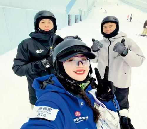 去年聖誕節前夕,有一名來自埃及的學員找她學習雙板。他在迪拜一家大型互聯網企業工作,經常到深圳出差,他和未婚妻約定假期去法國滑雪,聽說深圳新開了雪場就前來練習。