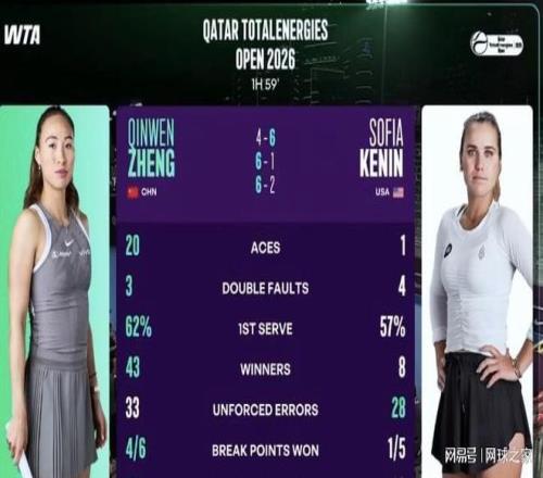 WTA1000多哈站首輪,鄭欽文麵對前澳網冠軍肯寧,在先失一盤的情況下,轟出驚人的20記ACE,以4-6、6-1、6-2逆轉取勝,迎來了傷愈複出的賽季開門紅。