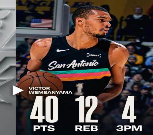 略有可惜的是,第三節文班亞馬進攻欲望下滑,單節隻出手3次,命中1記三分,且因為分差實在太大(馬刺最多領先41分),所以文班亞馬的最終得分停在了40分——